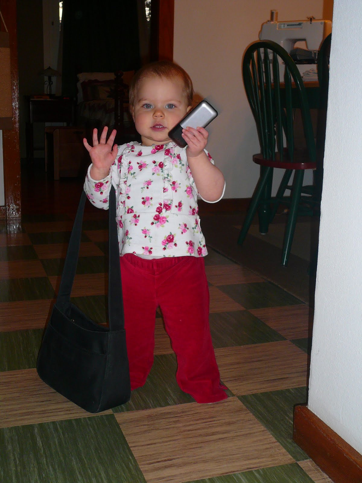In an effort to keep my own purse for myself, I gave Laura an old one of mine to play with and filled it with mommy-like accessories. She loves it and carries it all over the house while constantly dumping and refilling it.
